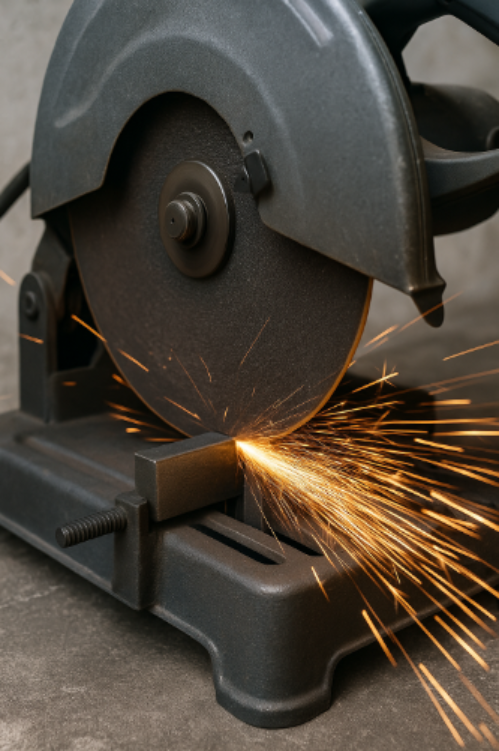 - Silnik – Napędza koło tnące przy wysokich obrotach (zwykle 3 000–5 000 obr./min w przypadku cięcia metalu).