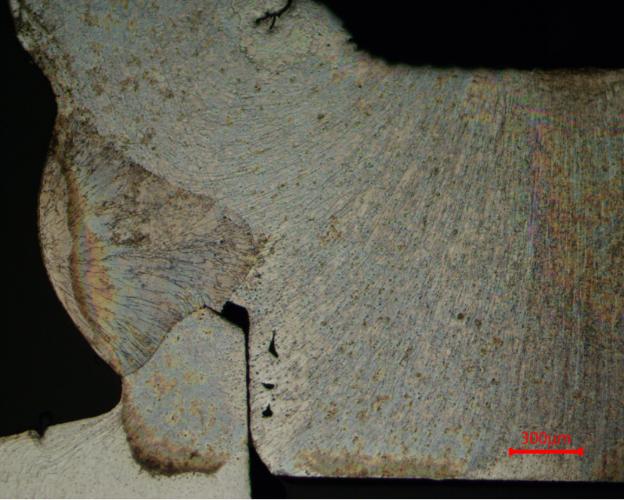 Próbki spawalnicze stopów aluminium po poddaniu działaniu korozji i oczyszczeniu wykazywały zjawisko tęczowej warstwy. Zdjęcia przedstawiają próbki spawania stopów aluminium folią tęczową i powierzchnię próbki ponownie przygotowaną po impregnacji próżniowej w celu wypełnienia porów.