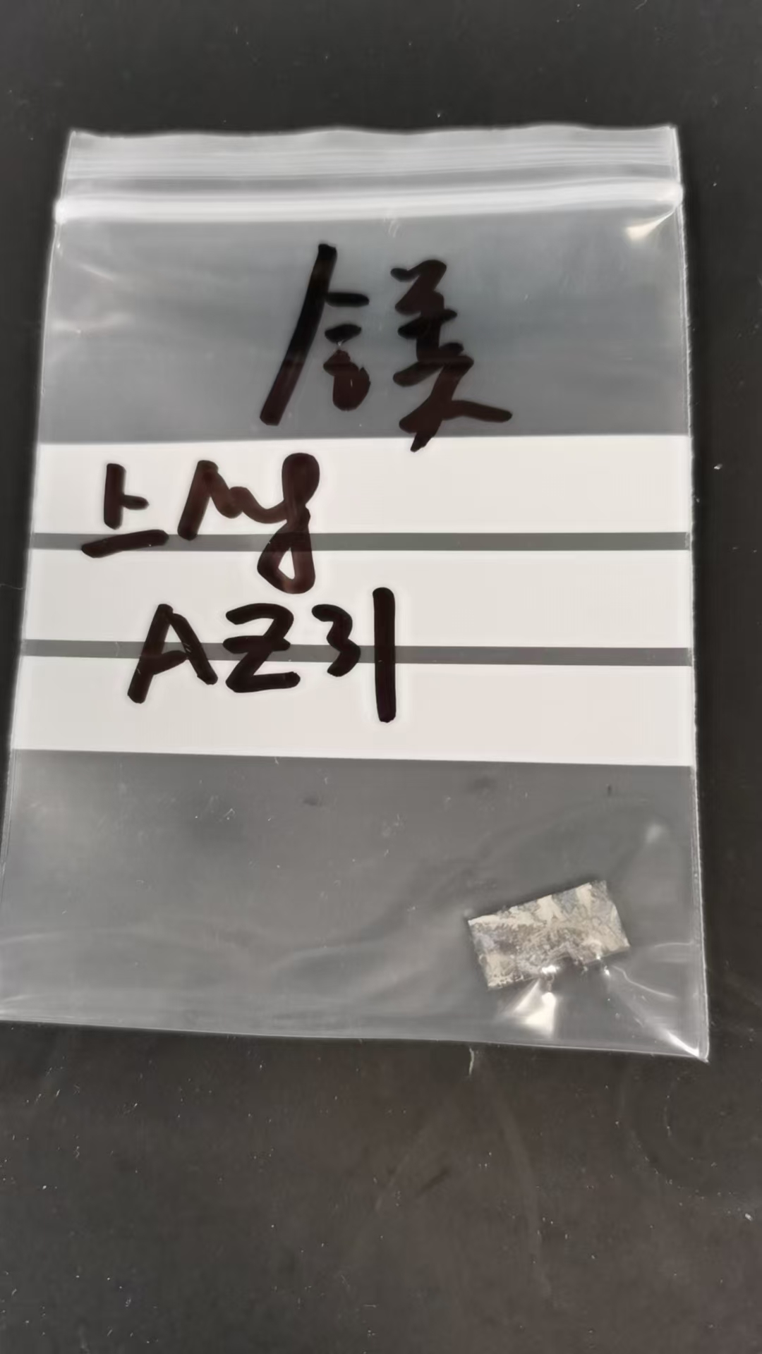 Teraz cienkie płytki stopu magnezu AZ (Al%: 2,5-3,5, Zn%: 0,6-1,4, Mn%: 0,2-1,0 i pozostałe mg) są wypolerowane i pobierane.