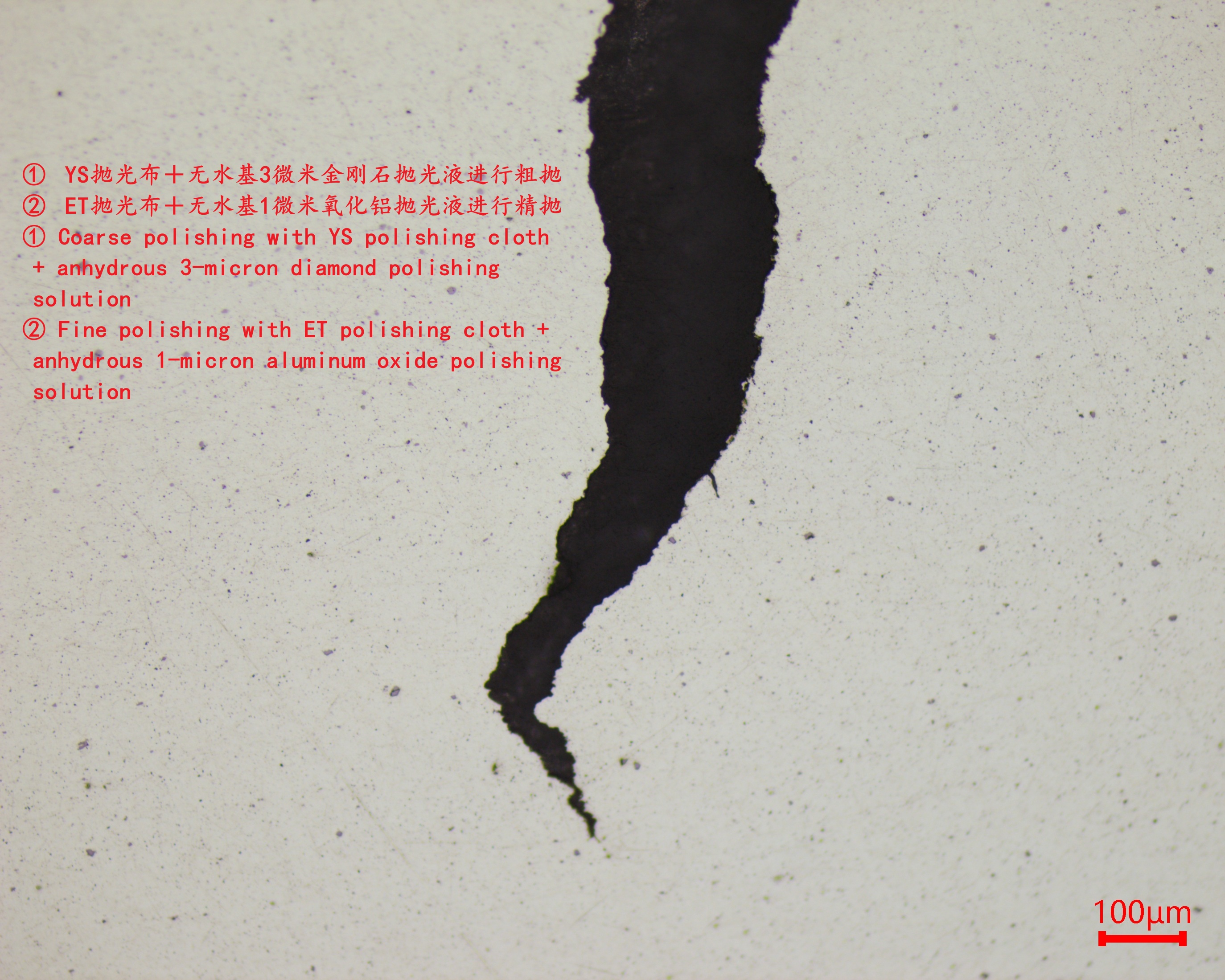 2. Grubne polerowanie jest przeprowadzane przy użyciu szmatki do polerowania YS i bez wody z 3-mikronowym zawieszeniem diamentowym.